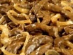 Corte do Contra File, acebolado com tomate.